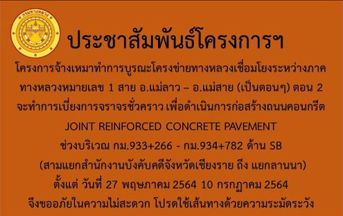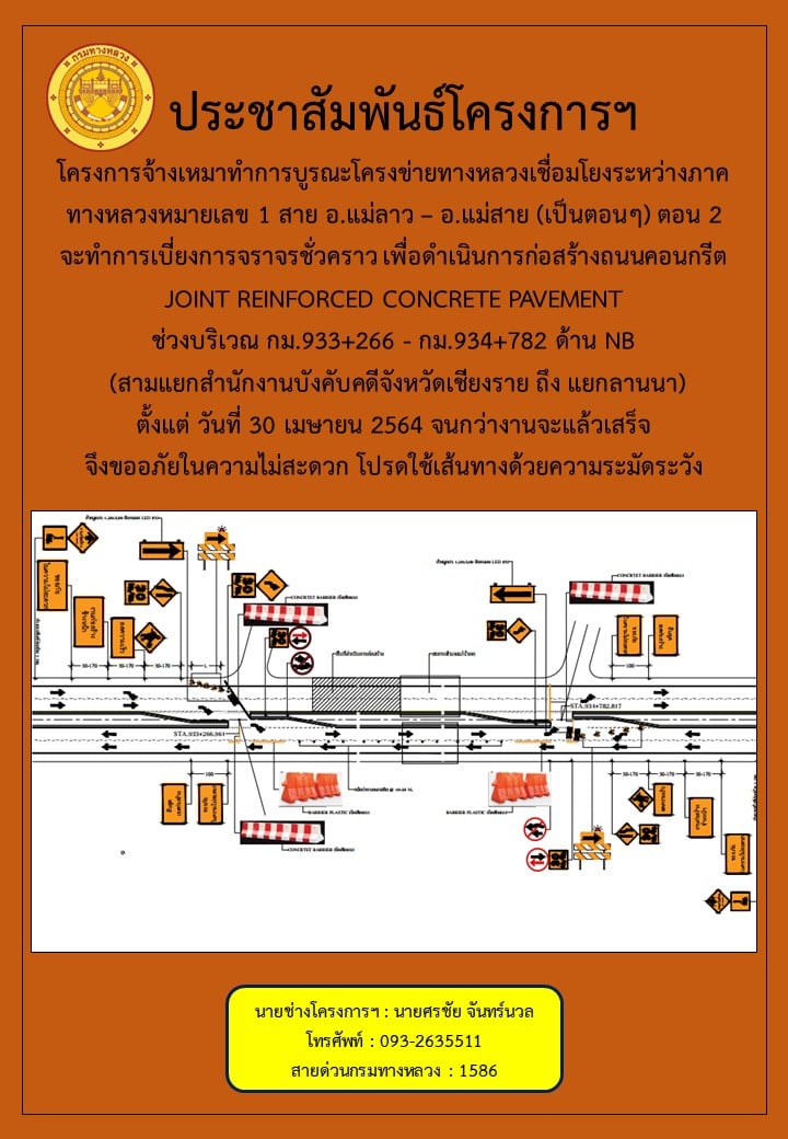 ประชาสัมพันธ์โครงการก่อสร้าง ทล.1 กม.933+266 - กม.934+782