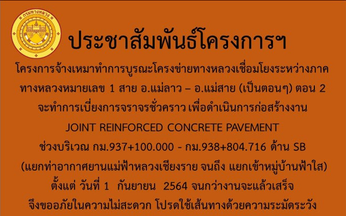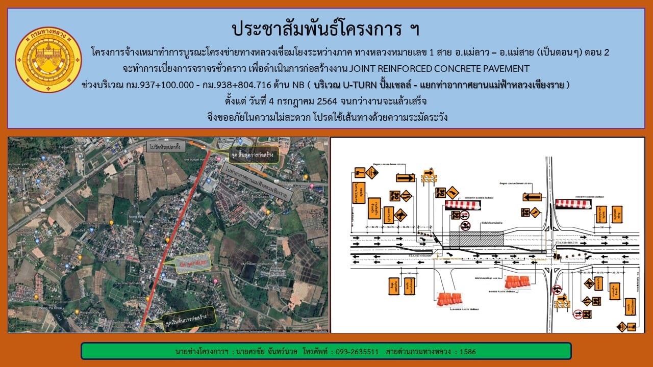 ประชาสัมพันธ์โครงการก่อสร้าง ทล.1 กม.937+100.000 - กม.938+804.716