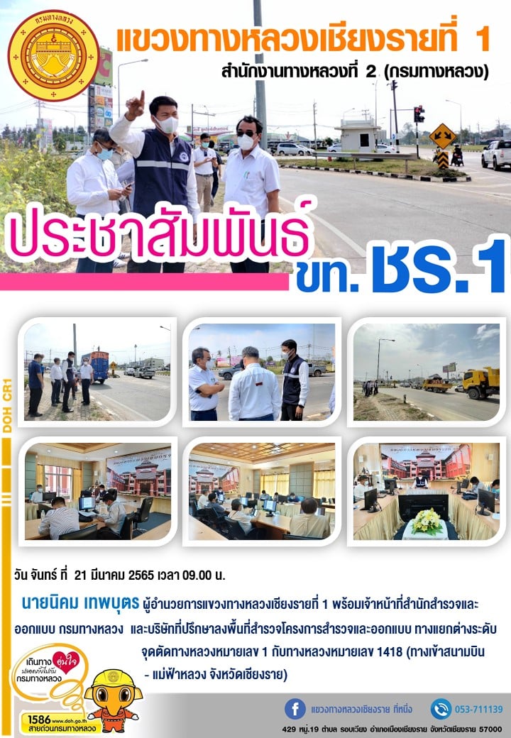 ลงพื้นที่สำรวจโครงการสำรวจและออกแบบ ทางแยกต่างระดับจุดตัดทางหลวงหมายเลข 1 กับทางหลวงหมายเลข 1418 (ทางเข้าสนามบินแม่ฟ้าหลวง จังหวัดเชียงราย)