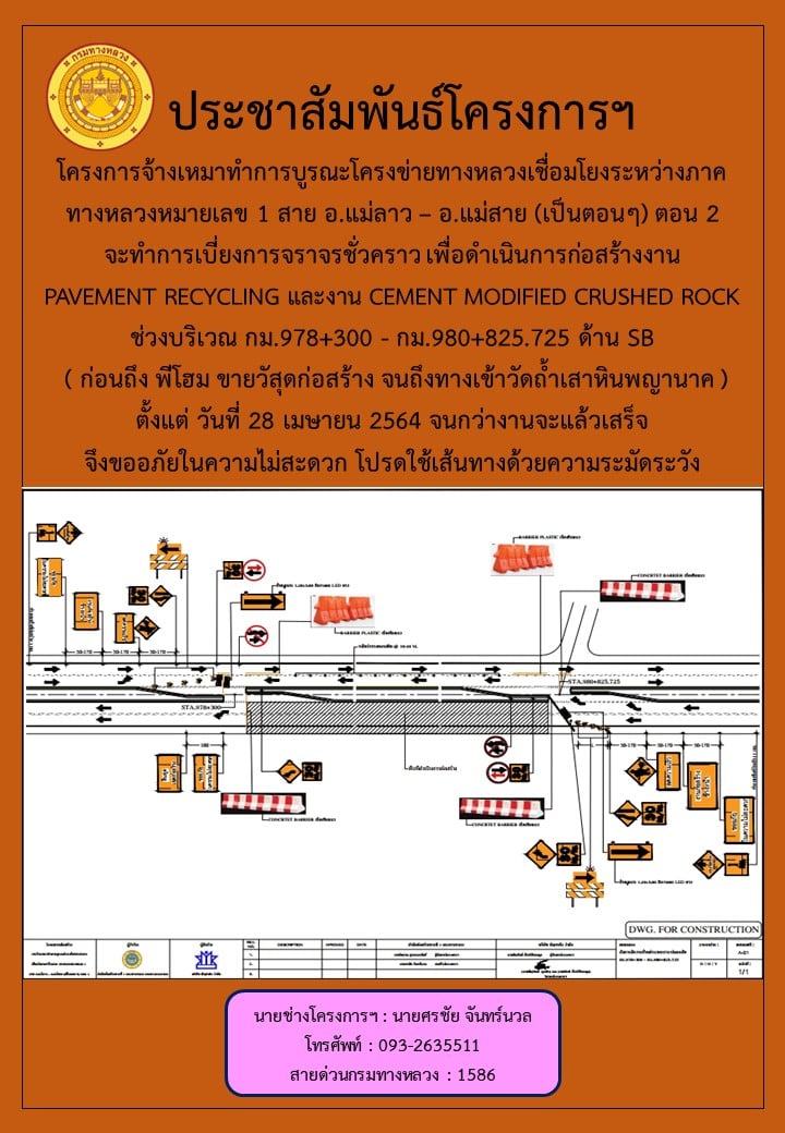 PAVEMENT RECYCLING และงาน CEMENT MODIFIED CRUSHED ROCK ช่วงบริเวณ กม.978+300 - กม.980+825.725 ด้าน SB