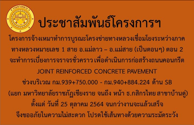 จึงขออภัยในความไม่สะดวก โปรดใช้เส้นทางด้วยความระมัดระวัง