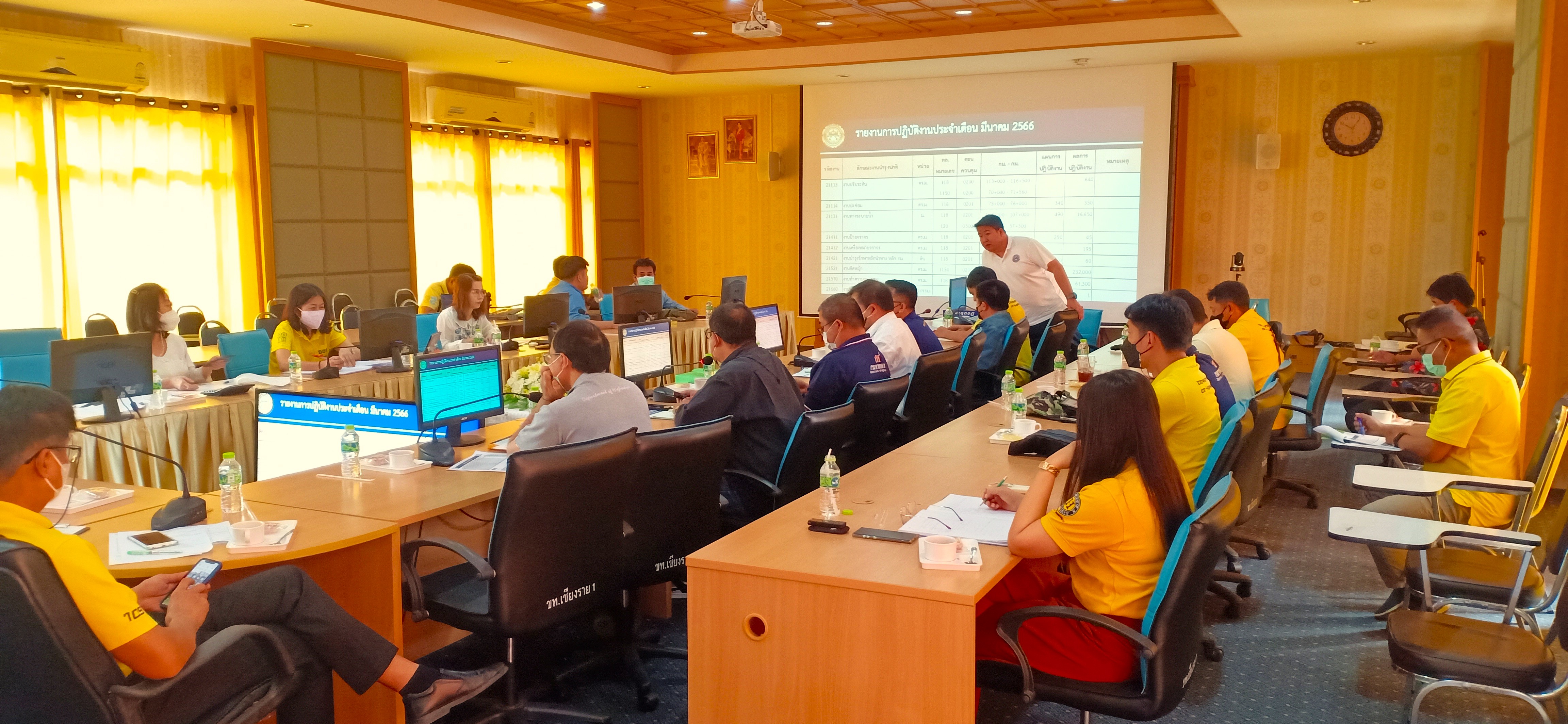 วันที่ 3 เมษายน 2566 นายอลงกรณ์ กัวตระกูล ผู้อำนวยการแขวงทางหลวงเชียงรายที่ 1 เป็นประธานการประชุมประจำเดือน ครั้งที่ 4/2566 เพื่อสรุปผลการปฏิบัติงานประจำเดือน และหารือปัญหาอุปสรรคในการปฏิบัติงาน พร้อมผู้บริหาร หมวดทางหลวง และเจ้าหน้าที่ในสังกัด ณ ห้องประชุมทรัพย์ล้อม แขวงทางหลวงเชียงรายที่ 1
