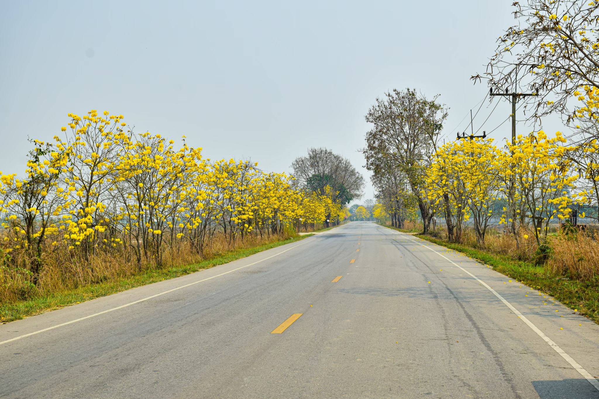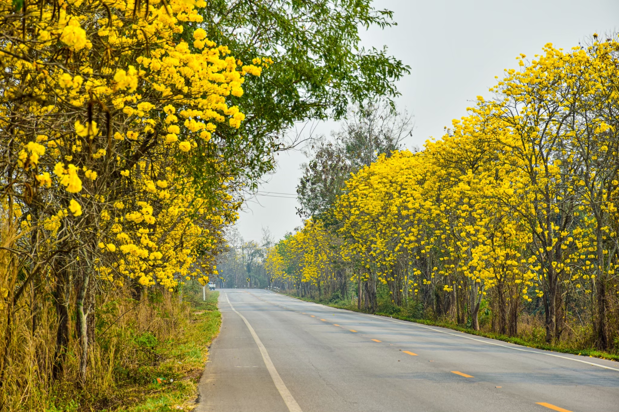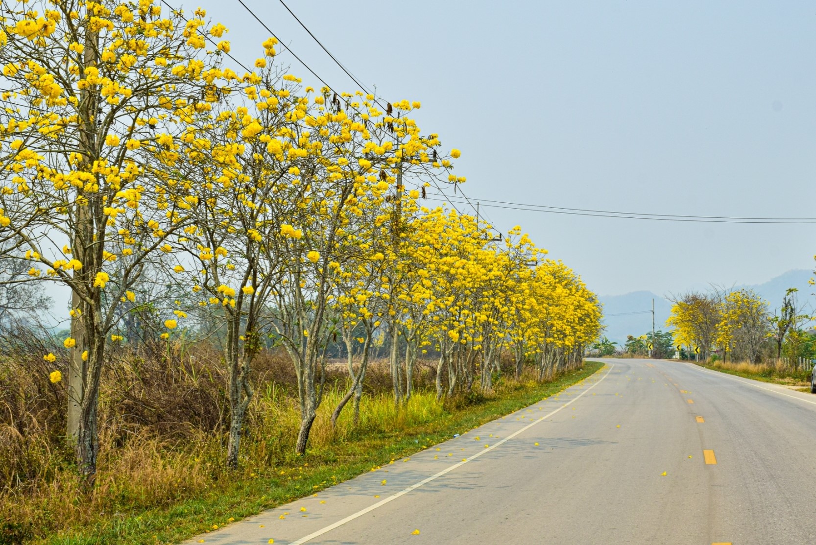 แขวงทางหลวงเชียงรายที่ 2 แนะนำถนนสวยงาม ซึ่งมีดอกเหลืองเชียงรายที่ออกตามรายทางในช่วง เดือน มกราคม - มีนาคม ถนนหมายเลข 1098 ตอน ท่าข้าวเปลือก – แก่นใต้ กม.52+200 – กม.53+300 ทั้งสองข้างทาง ก่อนเข้าหมู่บ้านแก่นใต้ อำเภอเชียงของ จังหวัดเชียงราย