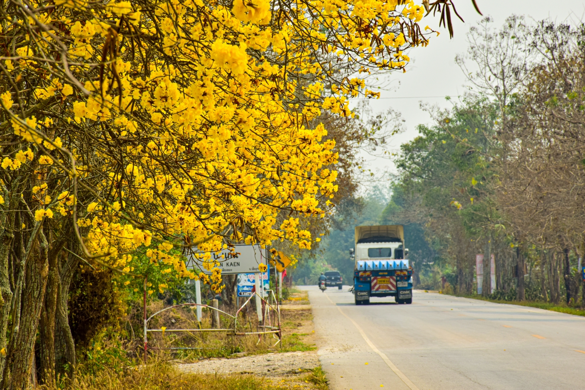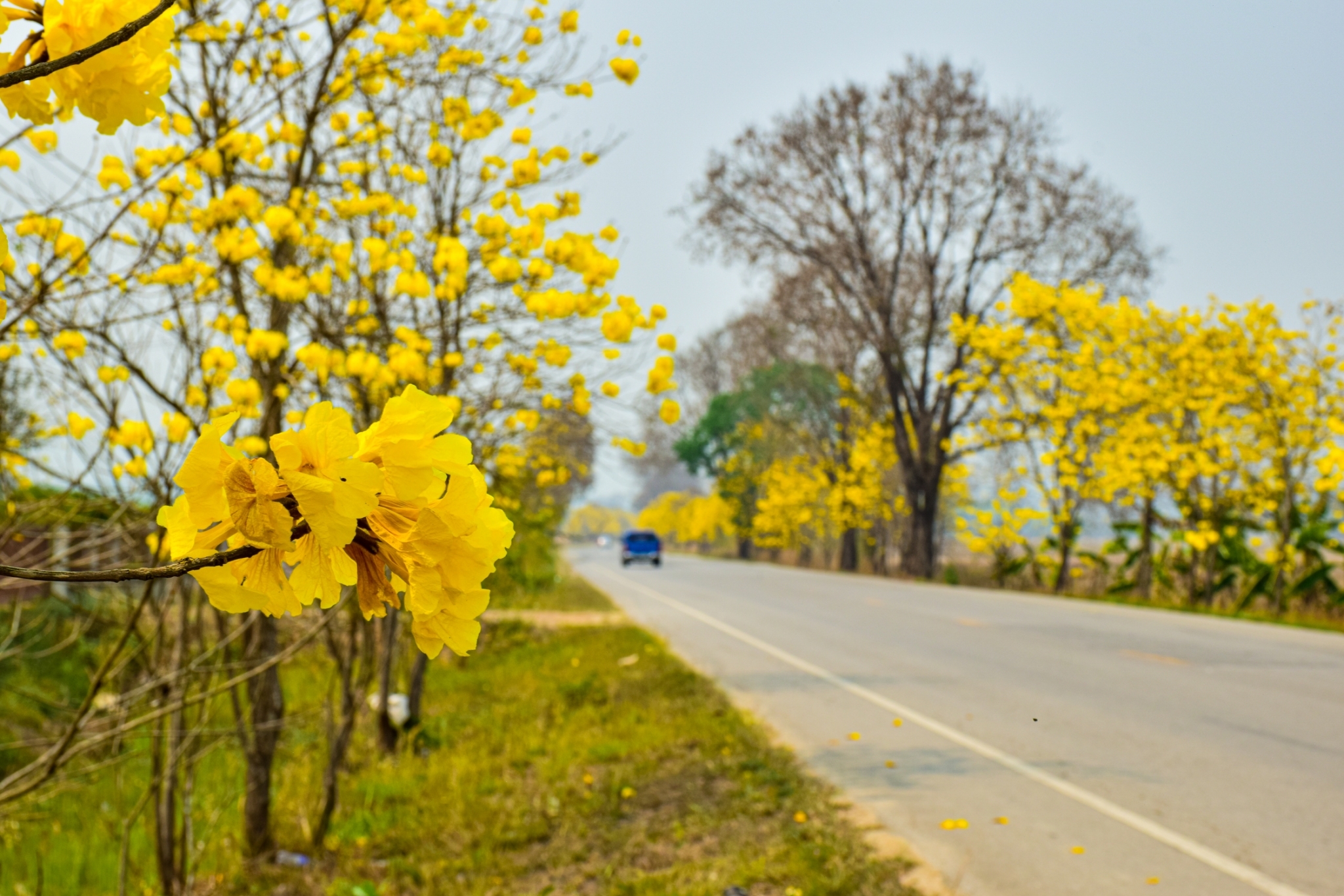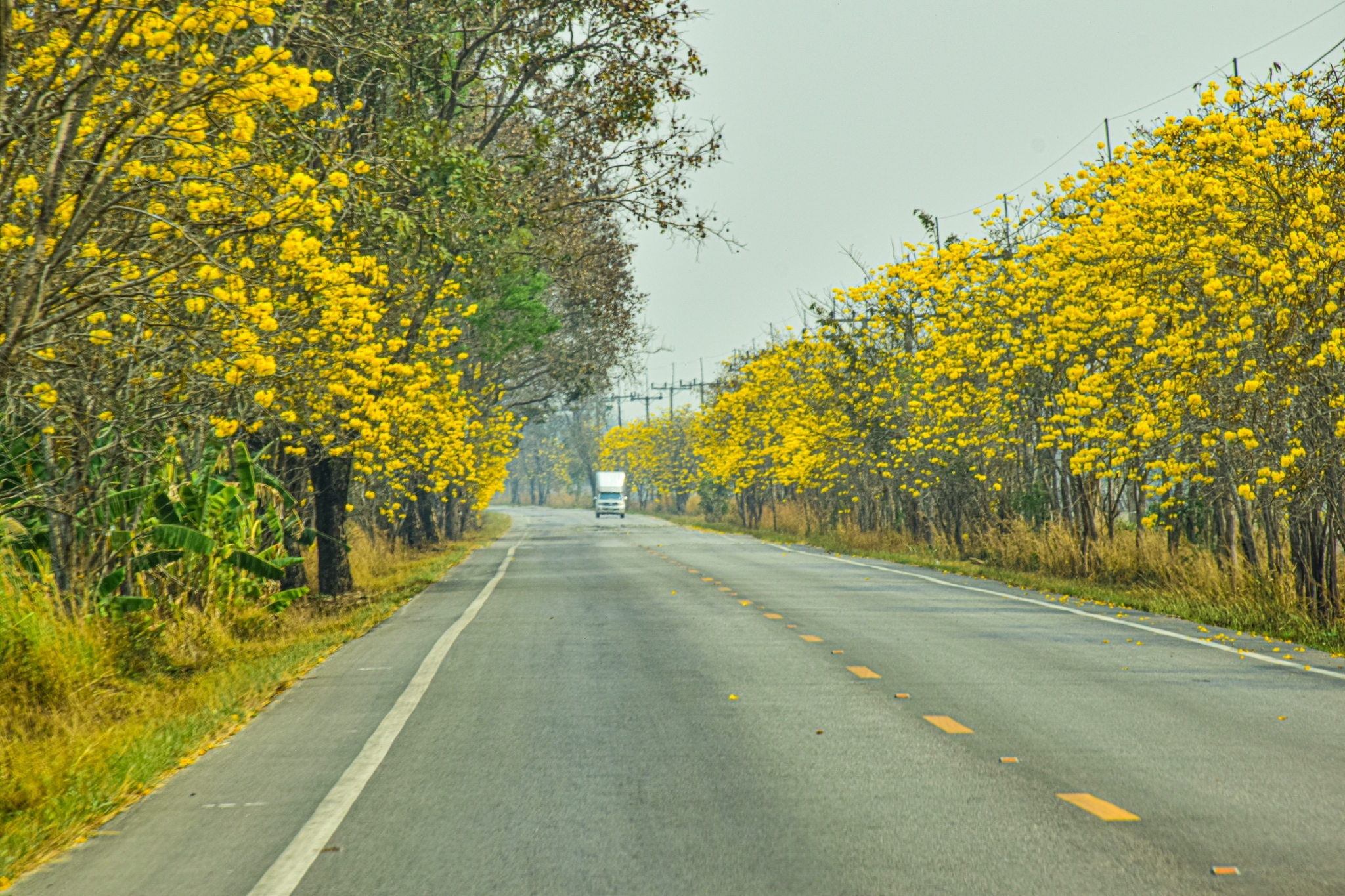 แขวงทางหลวงเชียงรายที่ 2 แนะนำถนนสวยงาม ซึ่งมีดอกเหลืองเชียงรายที่ออกตามรายทางในช่วง เดือน มกราคม - มีนาคม ถนนหมายเลข 1098 ตอน ท่าข้าวเปลือก – แก่นใต้ กม.52+200 – กม.53+300 ทั้งสองข้างทาง ก่อนเข้าหมู่บ้านแก่นใต้ อำเภอเชียงของ จังหวัดเชียงราย