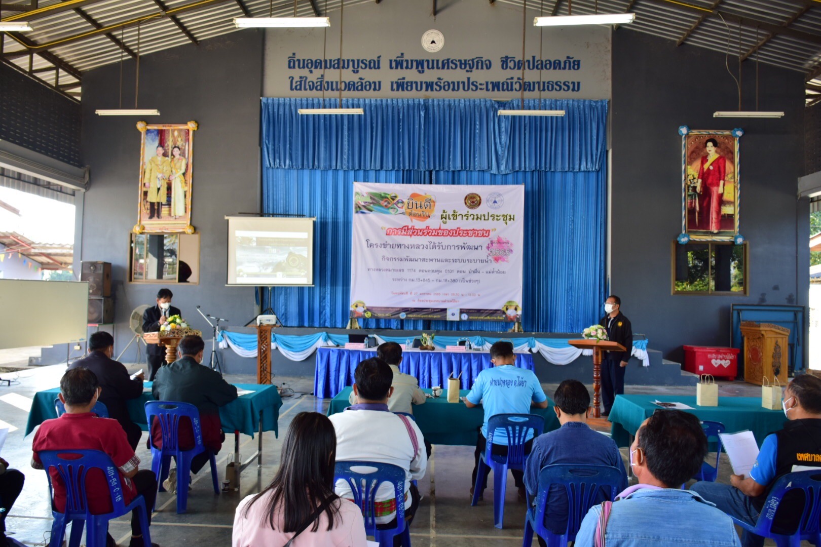 วันที่ 27 มกราคม 2565 เวลา 08.30 น. นายชวัช วัฒธรรม ผู้อำนวยการแขวงทางหลวงเชียงรายที่ 2 พร้อมด้วยนายศุภวิชญ์ จูเปรมปรี รองผู้อำนวยการฝ่ายปฏิบัติการ นายเปรมศักดิ์ ยศสันเที๊ยะ วิศวกรโยธาปฏิบัติการ นายณัฐธีร์ ติกุล นายช่างโยธาชำนาญงาน และเจ้าหน้าที่ในสังกัด ดำเนินการจัดกิจกรรมการมีส่วนร่วมรับฟังความคิดเห็นของประชาชน ในโครงการพัฒนาทางหลวงเพื่อเพิ่มประสิทธิภาพการจราจรและขนส่งทางหลวงหมายเลข 1174 ตอน ป่ามื่น – แม่ต๋ำน้อย กม.13+845 – กม.18+380 เพื่อให้ประชาชนได้รับทราบข้อมูล รวมทั้งรับฟังความคิดเห็นและข้อเสนอแนะ เพื่อนำไปเป็นข้อมูลในการดำเนินโครงการดังกล่าว ปฏิบัติการตามมาตรการของสำนักงานสารณสุข อำเภอเทิงอย่างเคร่งครัด โดยมีนายสุรพงษ์ ละฟู่ ปลัดอำเภอ (หัวหน้ากลุ่มงานบริหารงานปกครอง) เป็นประธาน ณ หอประชุมเทศบาลตำบลไม้ยา