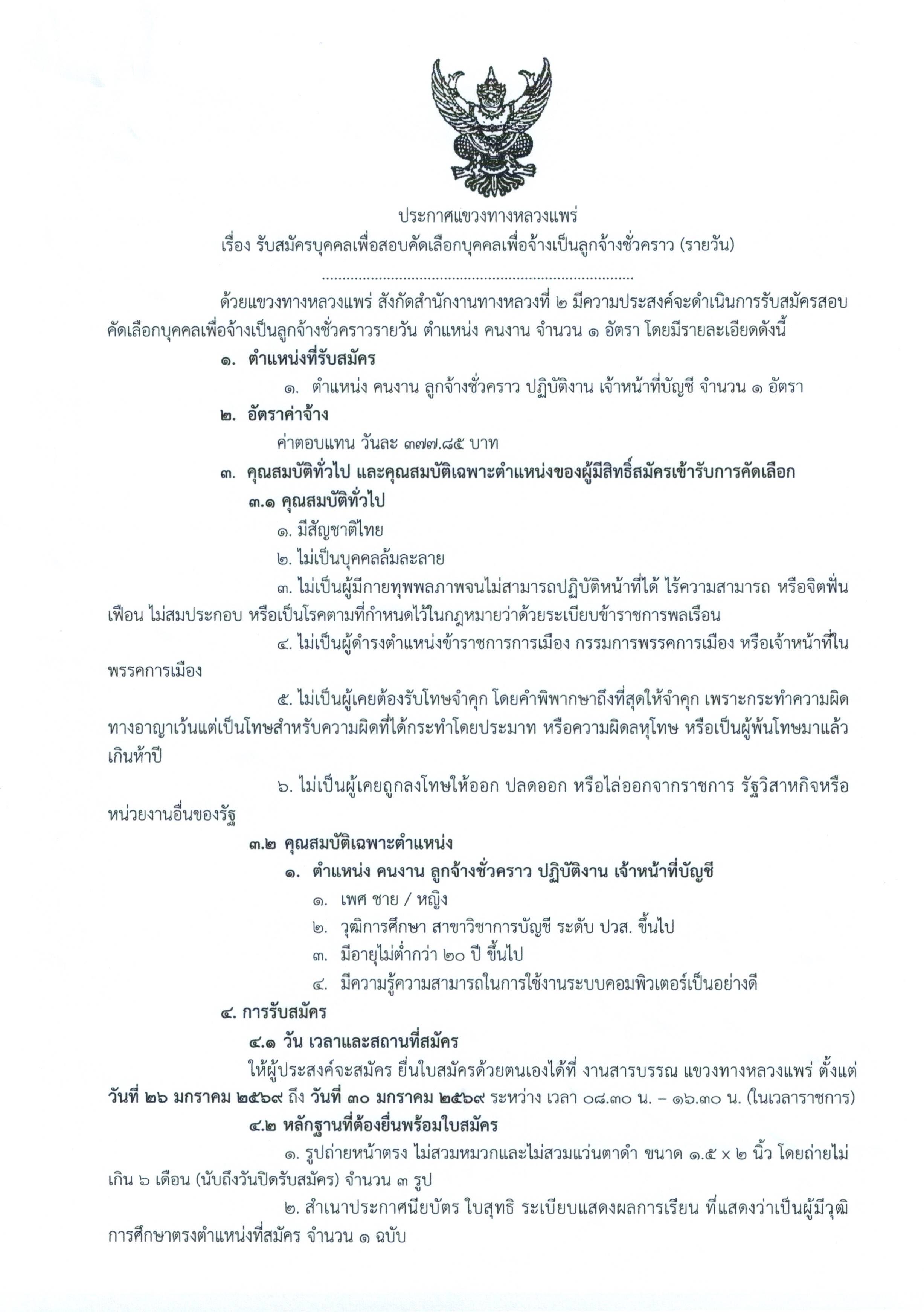 รับสมัครบุคคลเพื่อสอบคัดเลือกบุคคลเพื่อจ้างเป็นลูกจ้างชั่วคราว (รายวัน) ตำแหน่ง เจ้าหน้าที่บัญชี