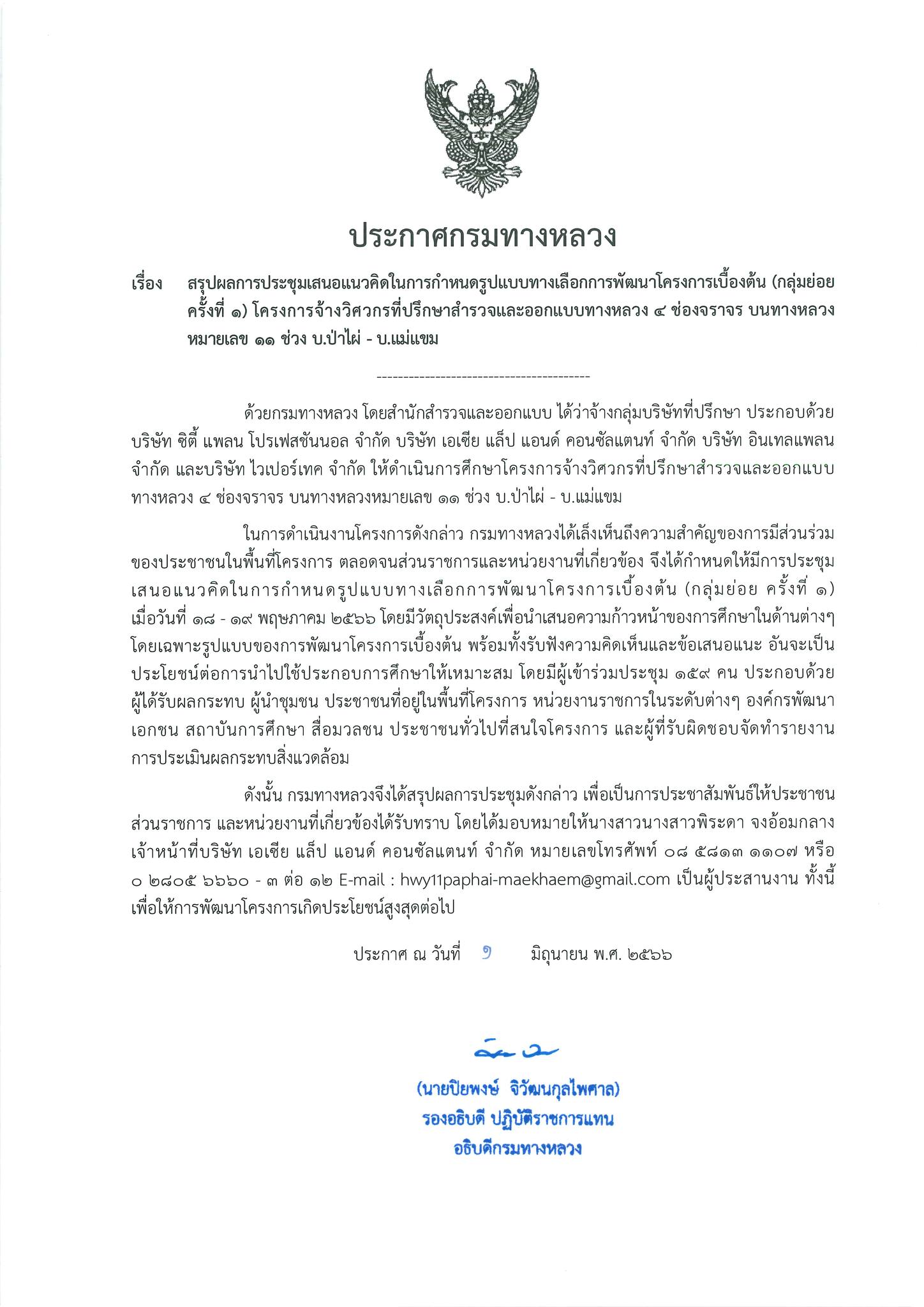 ดังนั้น กรมทางหลวงจึงได้สรุปผลการประชุมดังกล่าว เพื่อประชาสัมพันธ์ให้ทุกภาคส่วนที่เกี่ยวข้องได้รับทราบ
