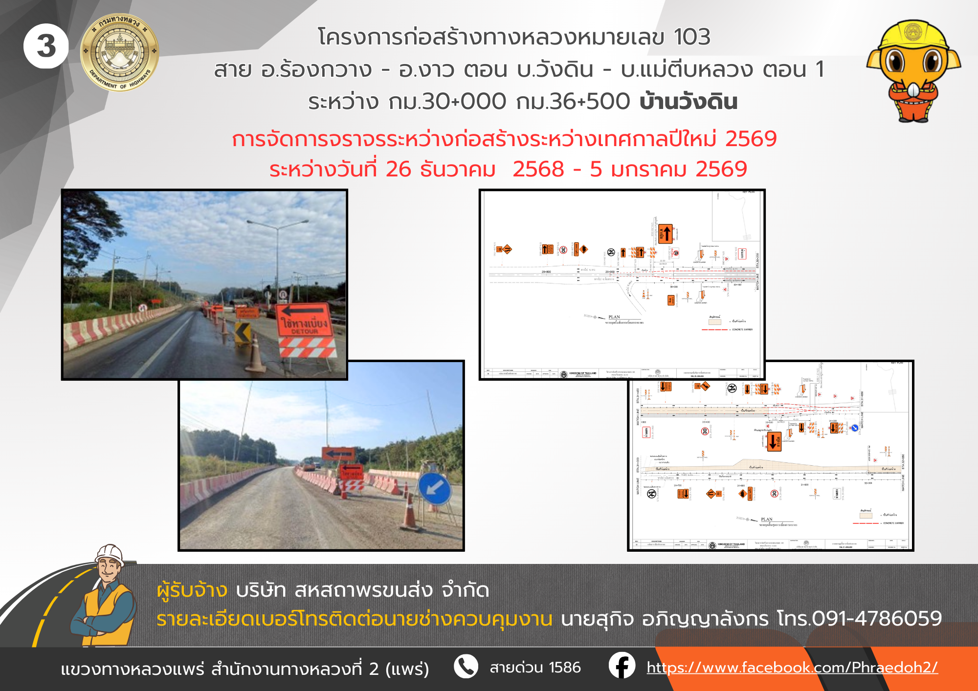 โครงการก่อสร้างทางหลวงหมายเลข 103 สาย อ.ร้องกวาง - อ.งาว ตอน บ.วังดิน - บ.แม่ตีบหลวง ตอน 1 ระหว่าง กม.30+000 กม.36+500 บ้านวังดิน