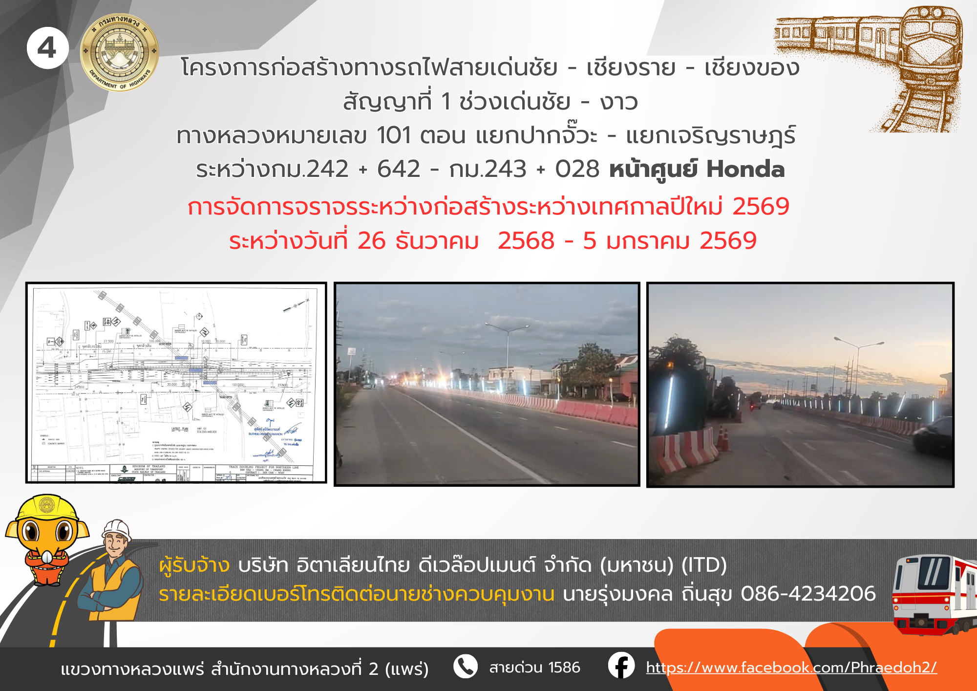 สัญญาที่ 1 ช่วงเด่นชัย - งาว ทางหลวงหมายเลข 101 ตอน แยกปากจั๊วะ - แยกเจริญราษฎร์ ระหว่างกม.242 + 642 - กม.243 + 028 หน้าศูนย์ Honda